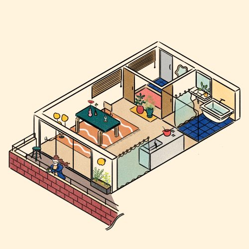 シンプル線画 / 説明・シーン・プロセスカット / コミカル・ユーモア / ファッション・アパレル / 俯瞰図・インフラ