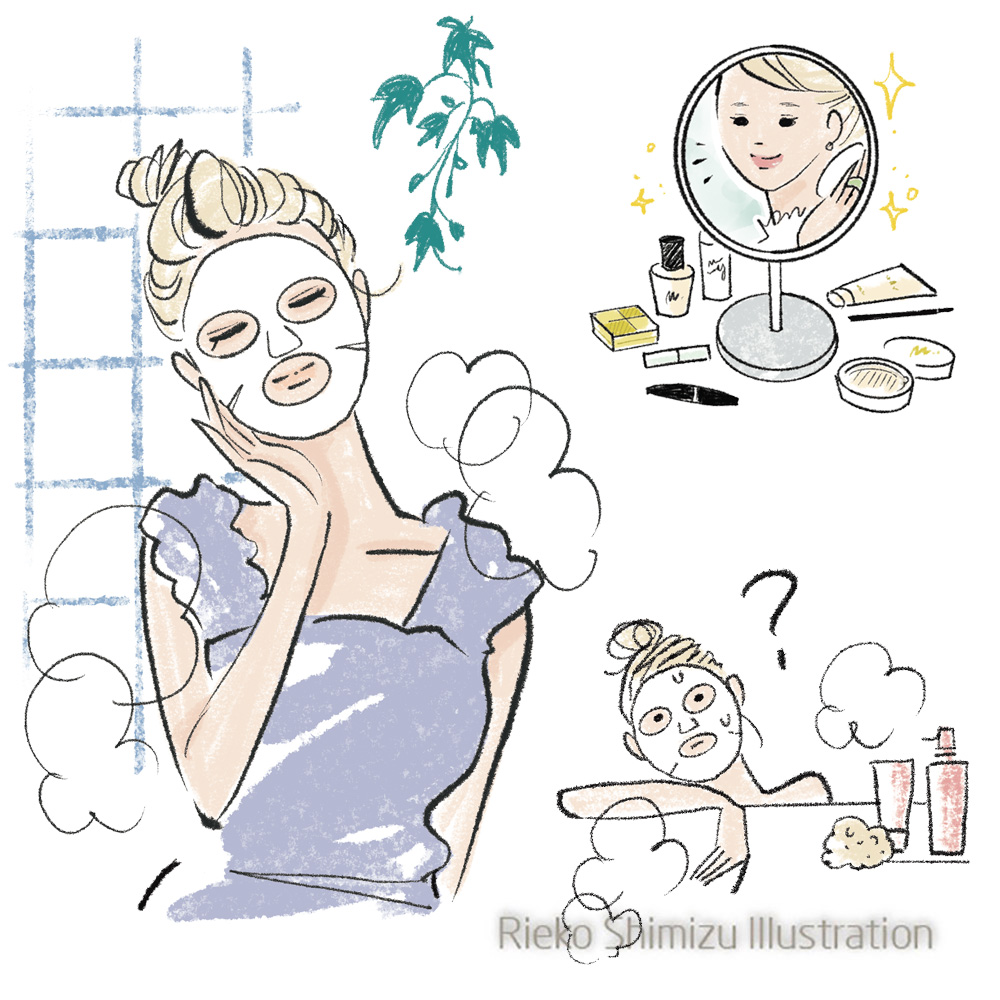 2026.2月号「シートマスクの正しい使い方レッスン」美容イラスト挿絵