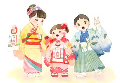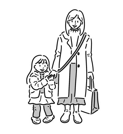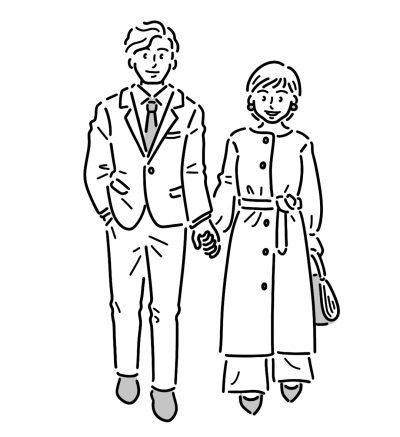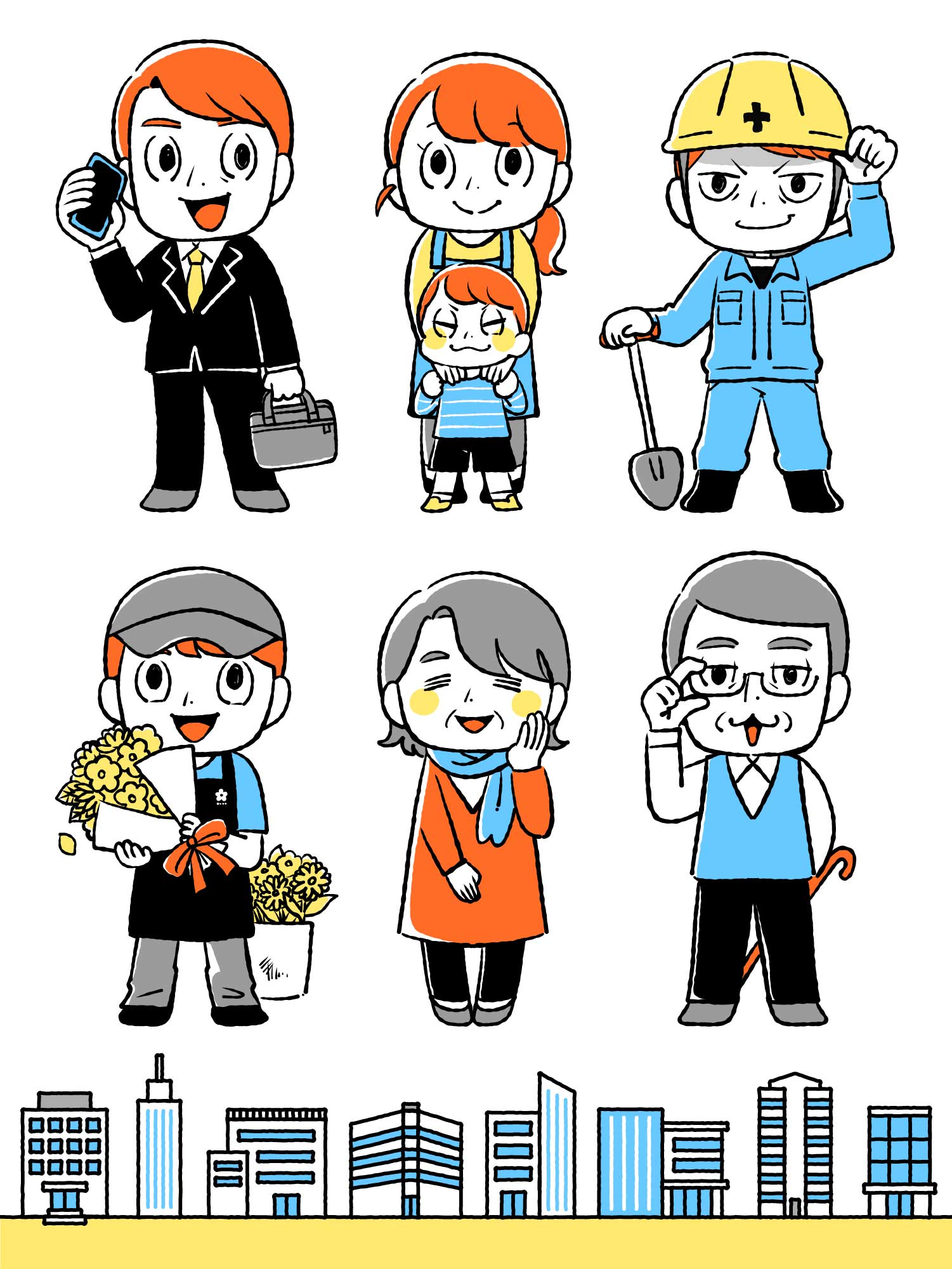 カップルや家族、三世代家族、赤ちゃん、子供、男性、お年寄りまで、人物中心のイラスト。