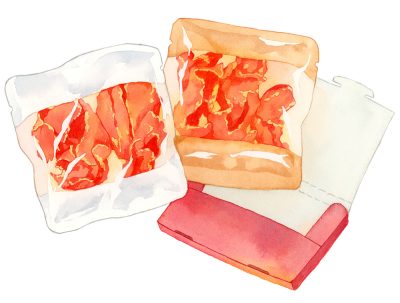 透明水彩が作る美しい色面を活かして、「おいしそうなフードイラスト」「情緒のある花や植物」「和を感じる人物カット」などを描いています。